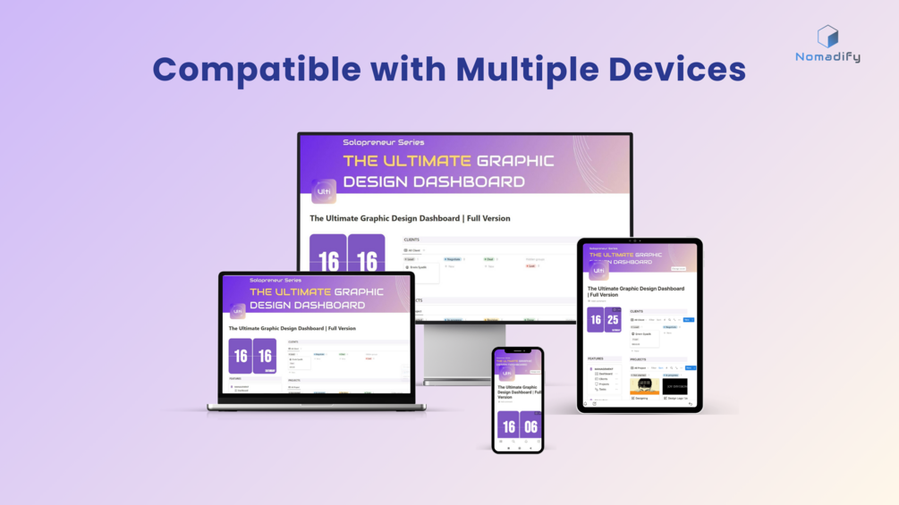 All-in-one dashboard Notion template helps graphic designers manage clients, projects, tasks, invoices, incomes/expenses, goals, digital portfolios, and more. It's easy to use, affordable, and packed with features that will help you stay organized, productive, and creative.